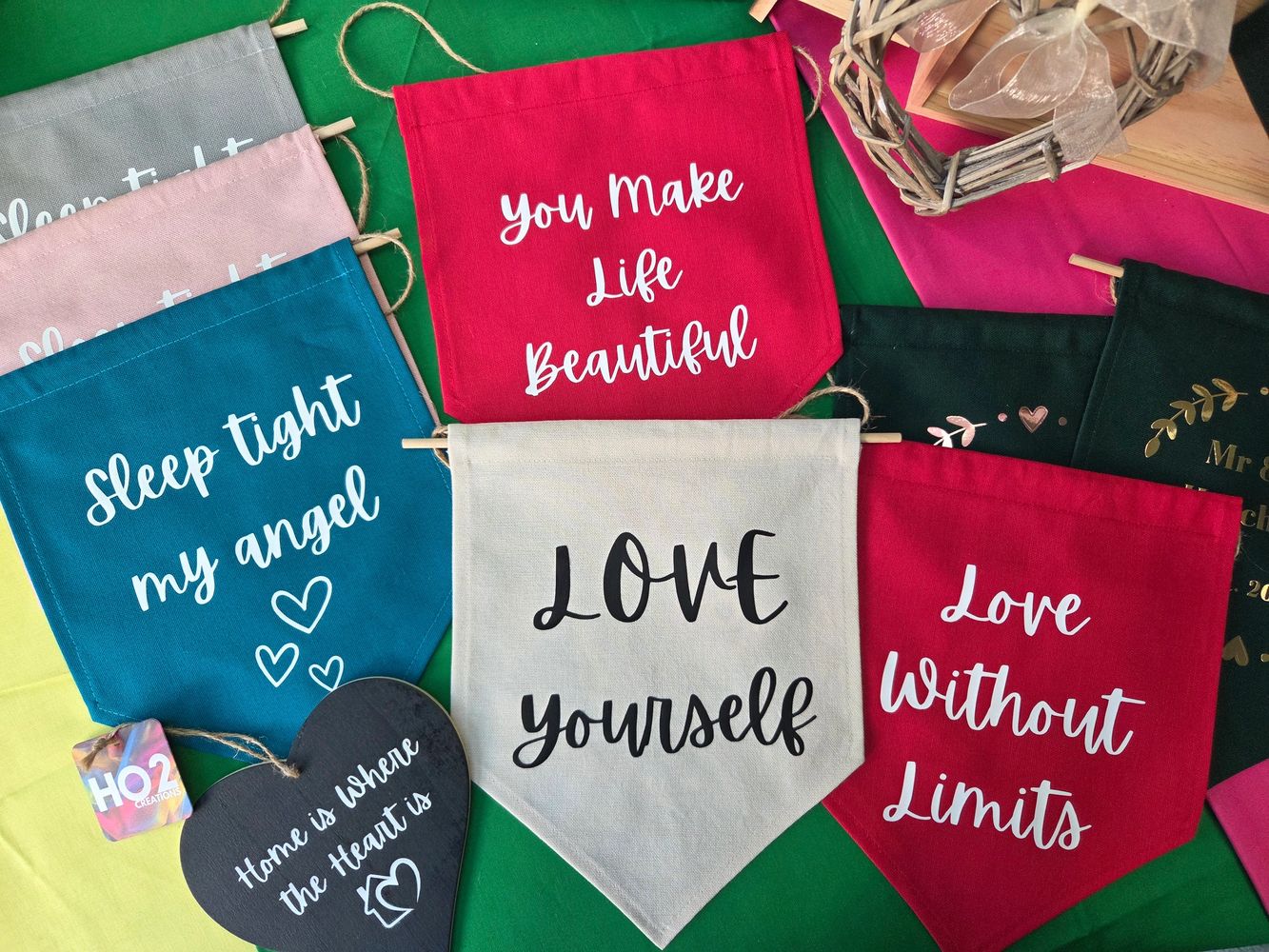 Fabric pennant flags that warm your heart and inspire your self-growth!